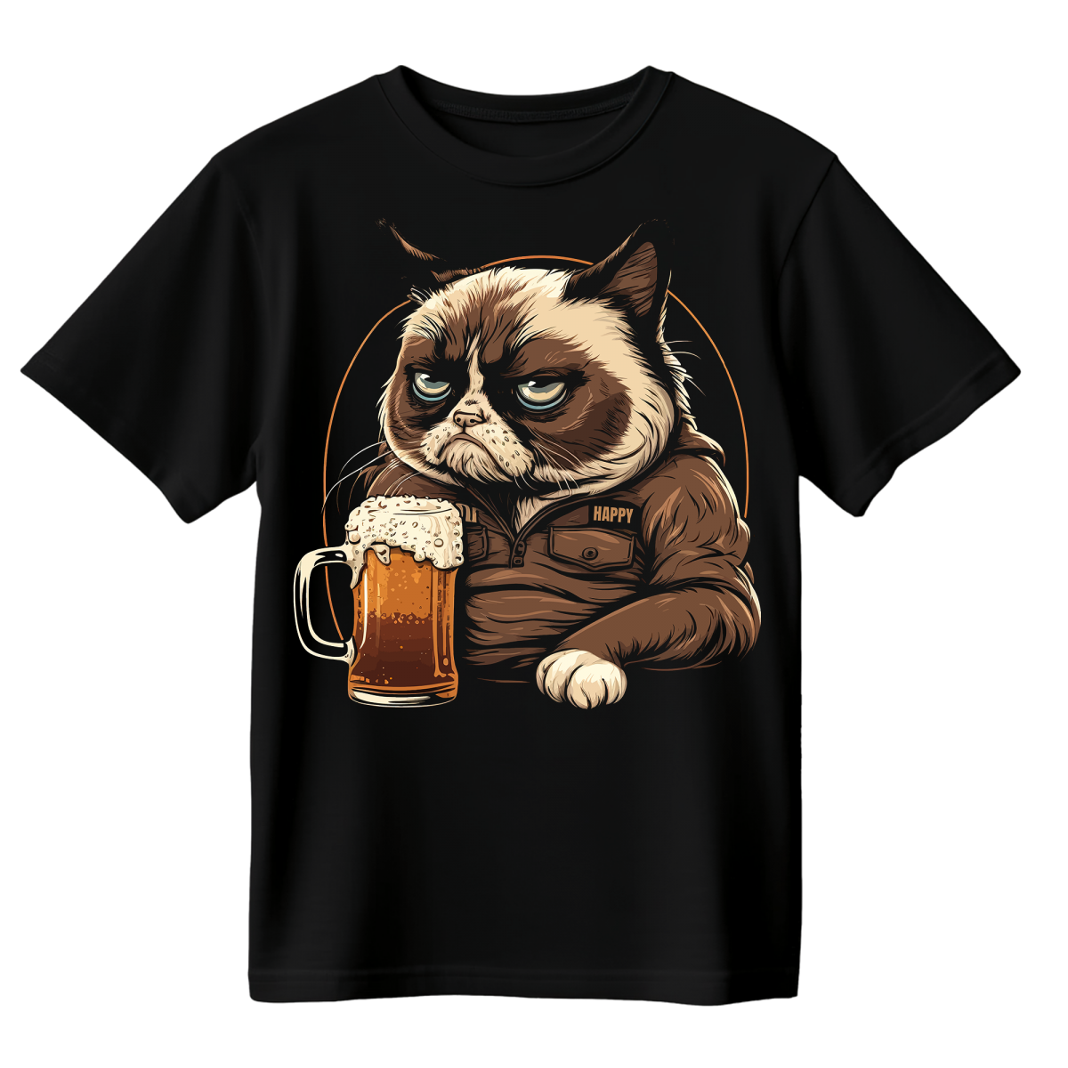 Koszulka Męska Kot Przy Kuflu - Czarna