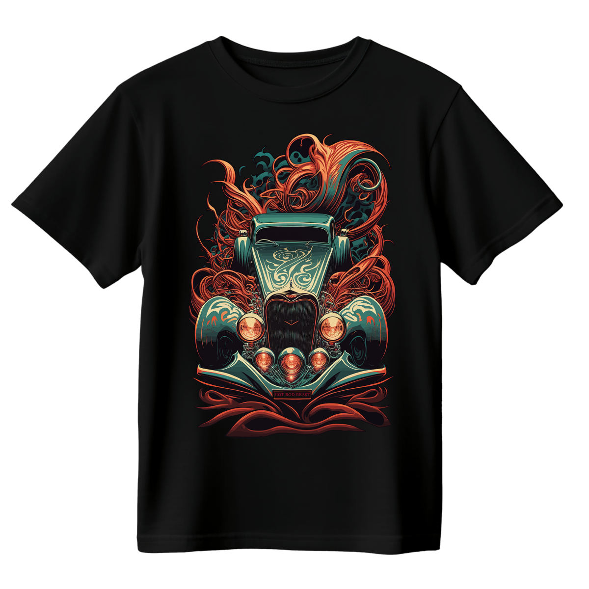 Koszulka Męska Ognisty Hot Rod - Czarna
