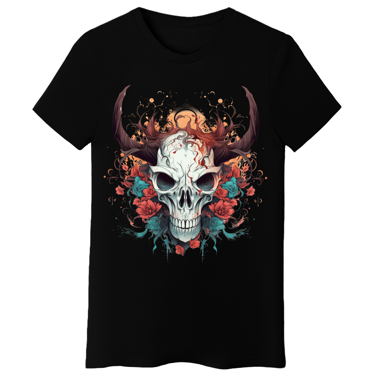 Koszulka Damska Rogata Czaszka - Czarna