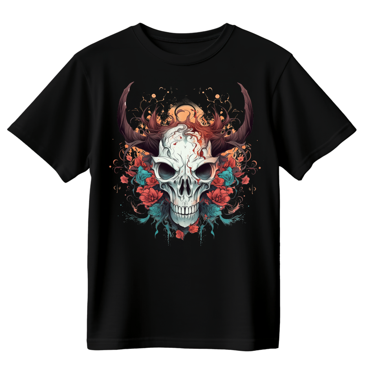 Koszulka Męska Rogata Czaszka - Czarna