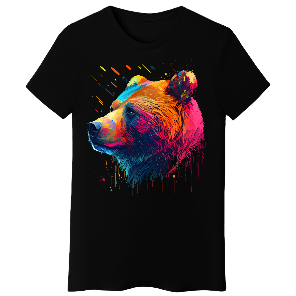 Koszulka Damska Kolorowy Niedźwiedź - Czarna